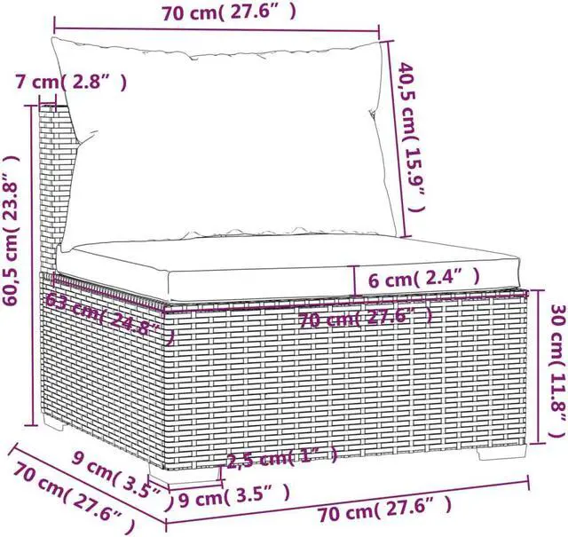 Middle sofa dimensions: 27.6" x 27.6" x 23.8" (L x W x H)