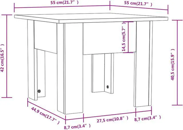 Dimensions: 21.7" x 21.7" x 16.5" (W x D x H)