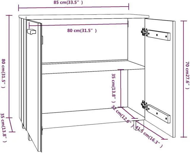 Overall dimensions: 33.5" x 13.8" x 31.5" (W x D x H)