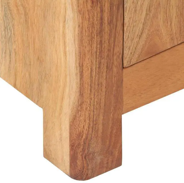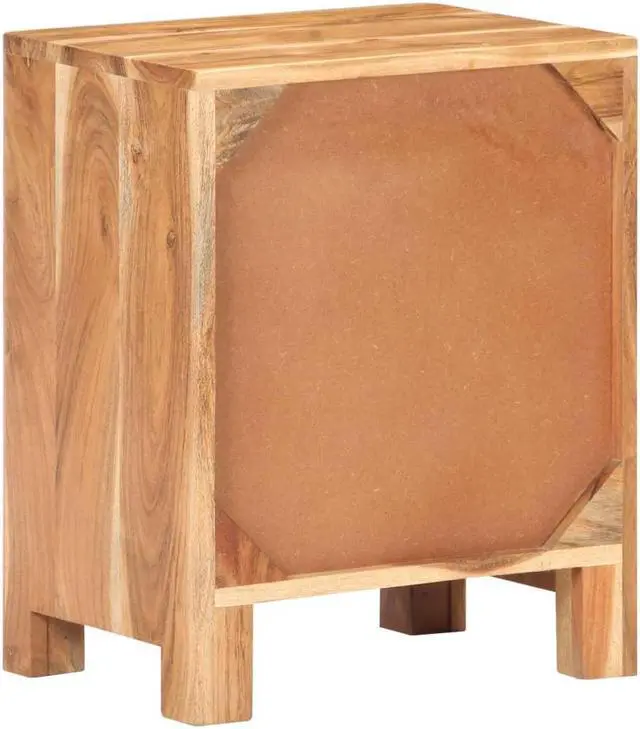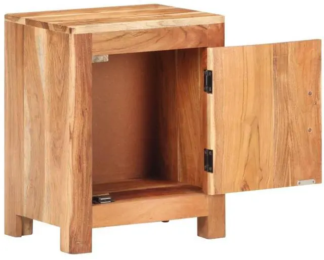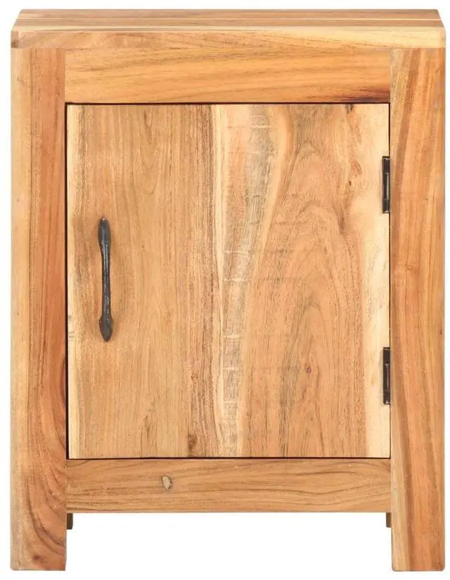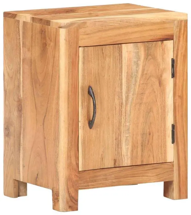 This wooden bedside cabinet exudes a rustic charm to your interior. Made of solid acacia wood with a natural finish, this bedside table is stable and durable. The craftsmanship and the beautiful wood grains make every piece of furniture unique and slightly different from the next. It has a big compartment behind a door to store your items. The sturdy tabletop can be used to display decorative items. It also serve as a nightstand, storage cabinet, side table etc.