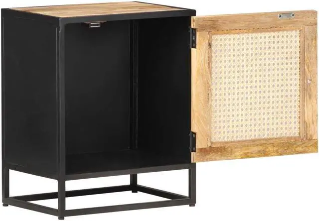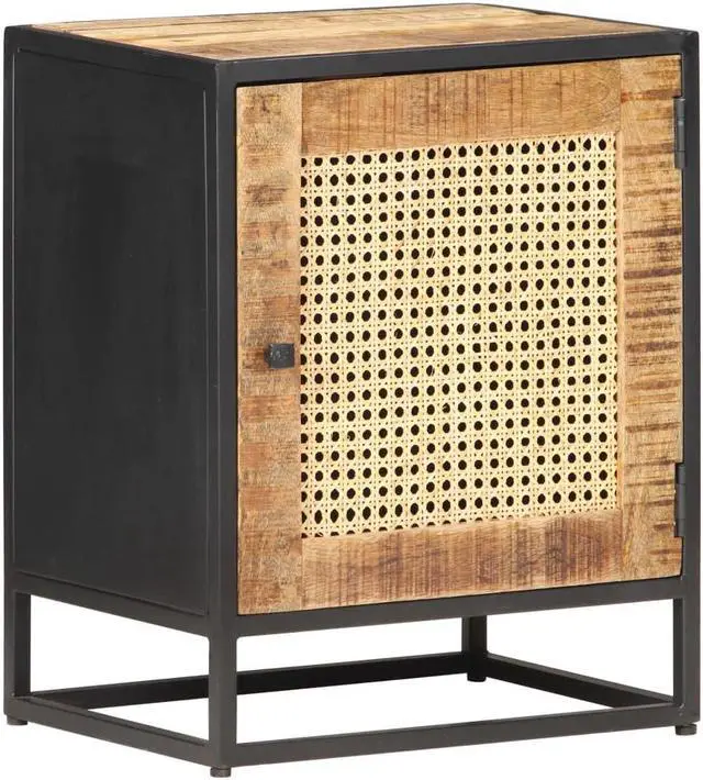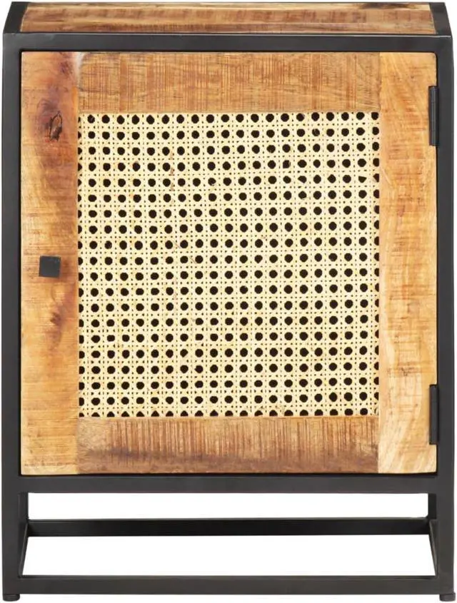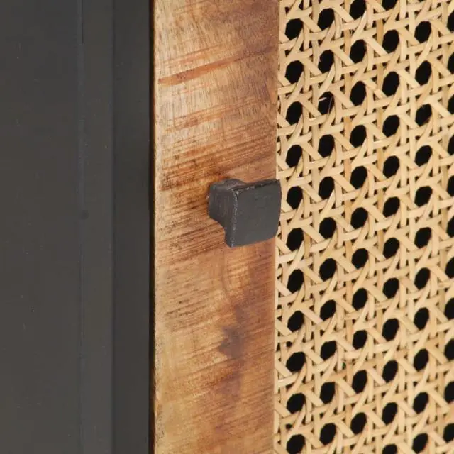 The iron frame contributes to its sturdiness and stability. What's more, the side cabinet features a hand-woven cane pattern on the door, adding to its rustic charming.