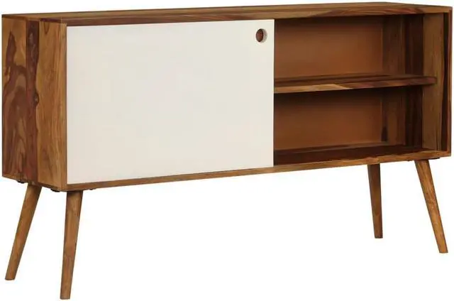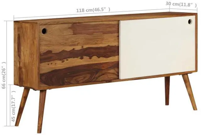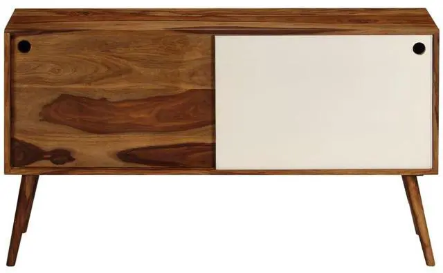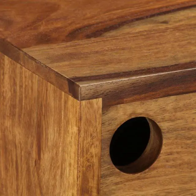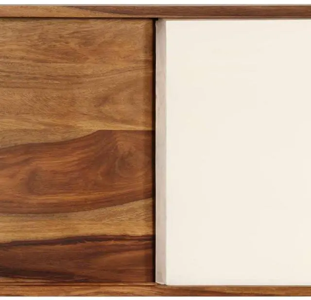 This solid Sheesham wood sideboard, featuring an elegant design, will be a focal point of any room. This wooden sideboard has a sturdy top, on which you can place decorative items like fruit baskets or vases. Its large compartments with sliding doors provide an ideal solution for keeping your items organized and clutter out of sight. Crafted from solid Sheesham wood, the side cabinet is durable and easy to maintain. Sheesham is a tropical hardwood that is famous for its rich grains and also known as rosewood or palisander. Its beautiful wood grains make every piece of furniture unique and slightly different from the next.