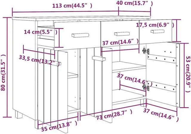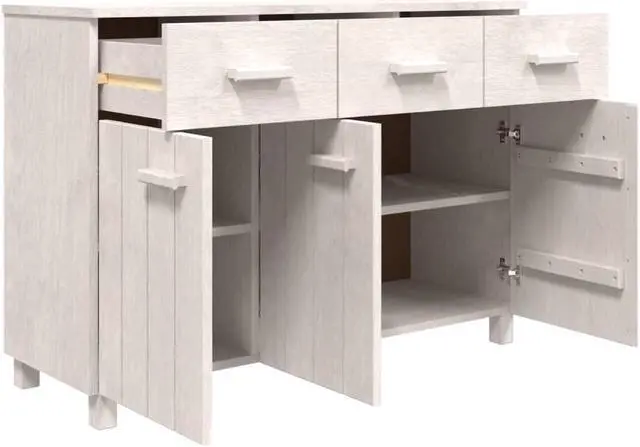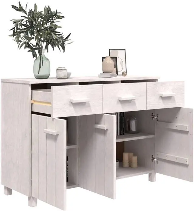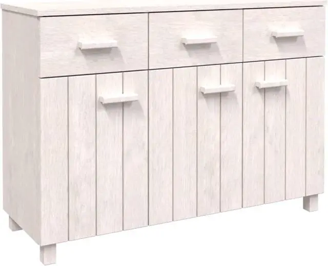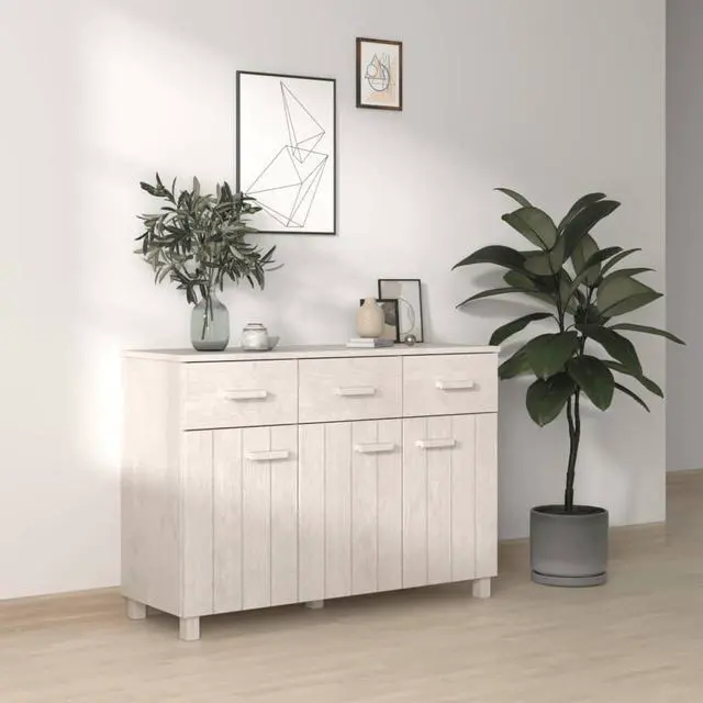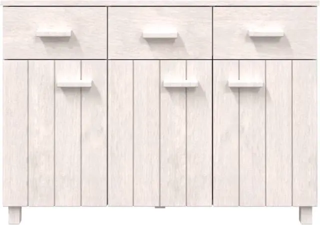 This wooden sideboard makes a decorative and practical addition to your decor. This drawer cabinet is made of solid pinewood, making it stable and sturdy. The highboard has 3 doors and 3 smooth sliding drawers, providing ample storage space for keeping your various daily essentials well organized and within easy reach. Additionally, the sturdy tabletop is perfect for displaying decorative objects, photo frames, and potted plants.