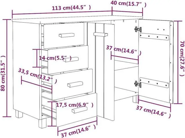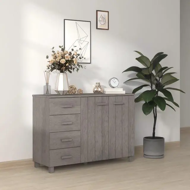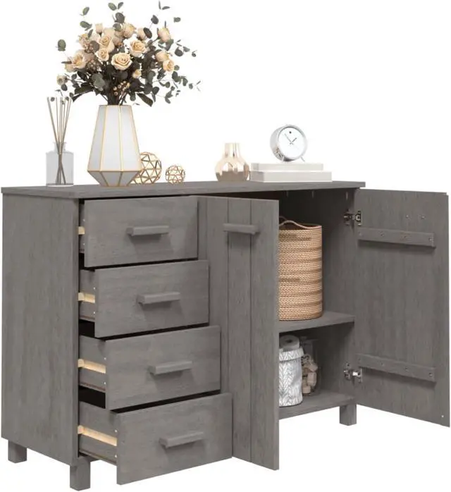 This drawer cabinet is made of solid pinewood, making it stable and sturdy. The highboard has 2 doors and 4 smooth sliding drawers, providing ample storage space for keeping your various daily essentials well organized and within easy reach. Additionally, the sturdy tabletop is perfect for displaying decorative objects, photo frames, and potted plants.