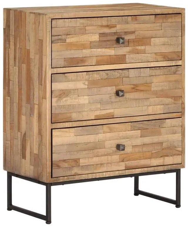 This reclaimed teak sideboard is a timeless accessory for your home. It can also be used as a side cabinet. This rustic wooden sideboard is handmade of reclaimed teak, which is very sturdy and durable and has natural characteristics. Every step of the process is carried out with the greatest care, be it polishing, painting or lacquering. The craftsmanship and beautiful wood grains make every piece of furniture unique and slightly different from the next. The cabinet features ample storage space to keep your important items well organized and within reach.