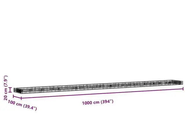 This gabion raised bed allows you to conveniently create a secure yet stylish border for a flower or plant bed in your garden or on your patio. The sturdy gabion is designed to be filled with rocks or gravel. Made of rustproof and weather-resistant galvanized steel, the gabion is very stable and durable. The transverse and longitudinal wires welded at every intersection offer extra stability to the gabion planter and also works as a mesh grid. Please note that stones and plants are not included in delivery.