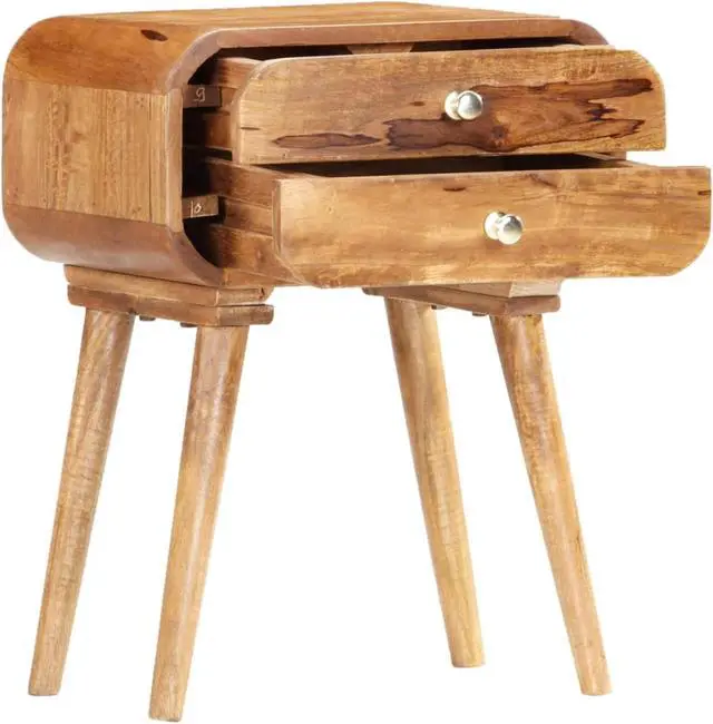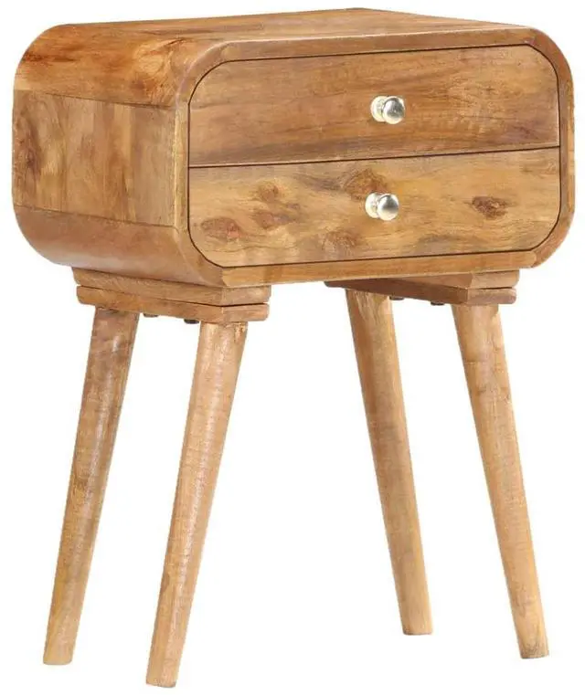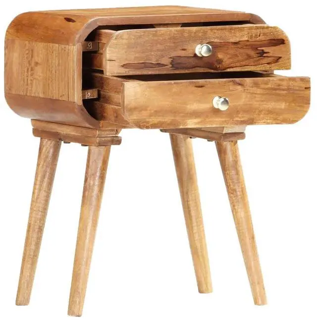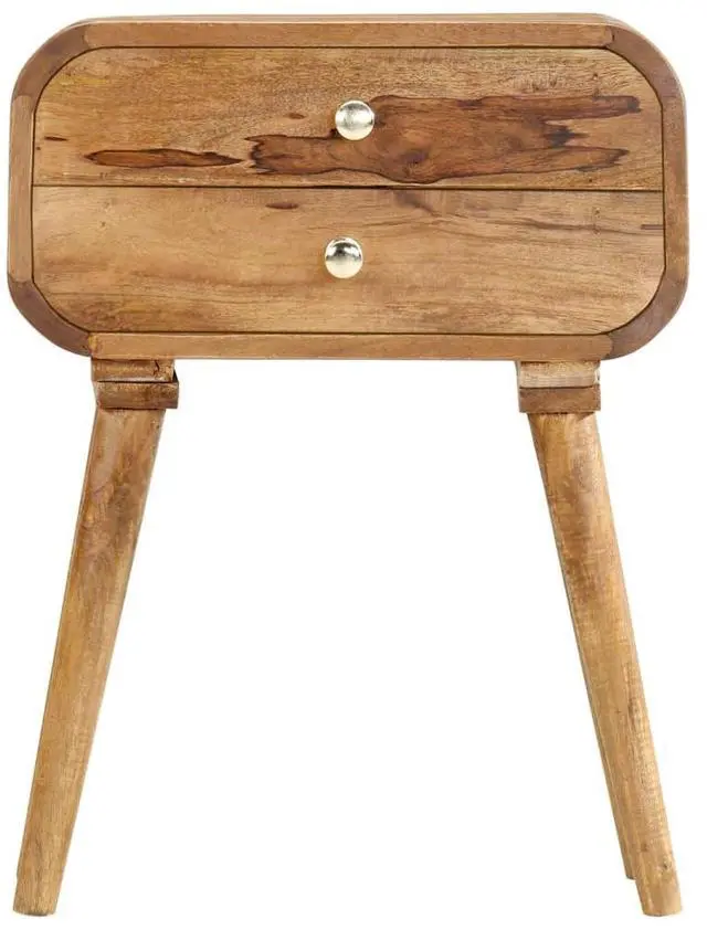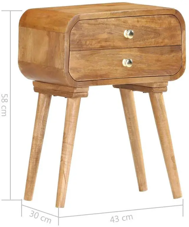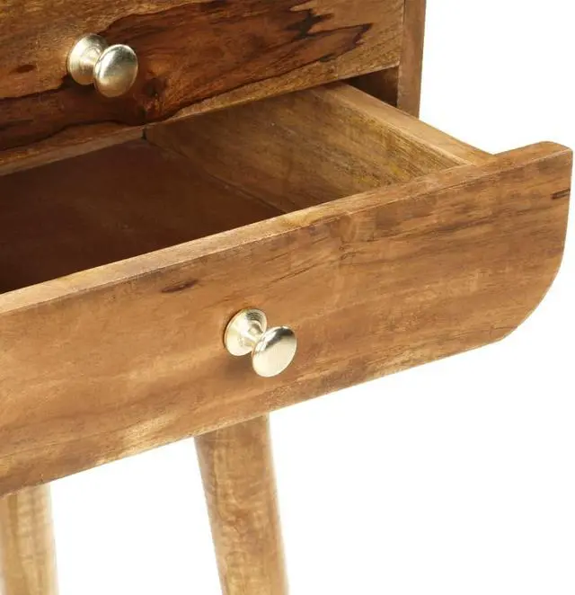 Introduce an air of rustic charm to your interior with our elegant wooden bedside table! It will make a timeless addition to your living space. Made of solid mango wood, the nightstand has been given a beautiful finish by polishing and lacquering, making it exude a refined look. Mango wood is a dense and robust hardwood which has beautiful brown or golden streaks and contours on its surface. Additionally, the 2 drawers provide storage space for keeping smaller items organized and within reach.