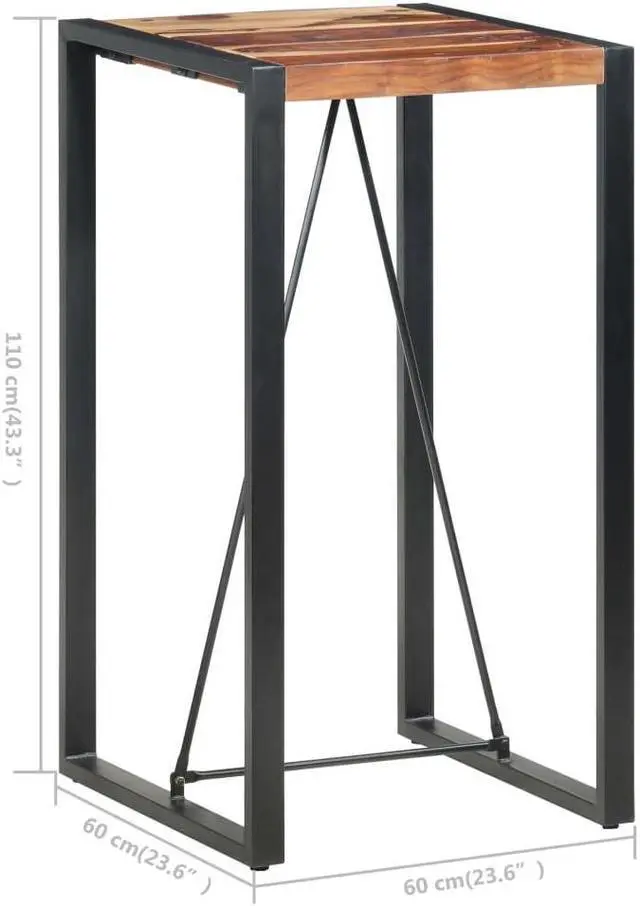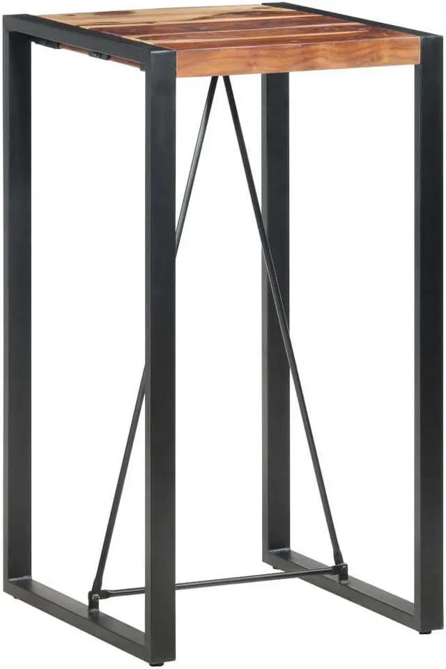This bar table mixes function and style, making it a versatile piece for any modern home. The solid Acacia wood top shows off a rich brown color, perfectly paired with black lacquered steel legs that create an inspiring focal point for get-togethers in your dining room or kitchen.