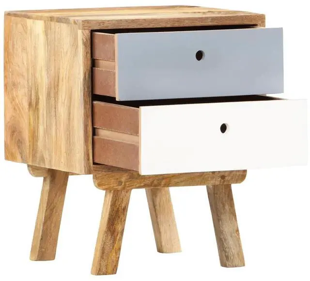 Introduce an air of rustic charm to your interior with our elegant wooden bedside table! It will make a timeless addition to your living space. Made of solid mango wood, the nightstand has been given a beautiful finish by polishing and lacquering, making it exude a refined look. Mango wood is a dense and robust hardwood which has beautiful brown or golden streaks and contours on its surface. Additionally, the 2 drawers provide storage space for keeping smaller items organized and within reach.