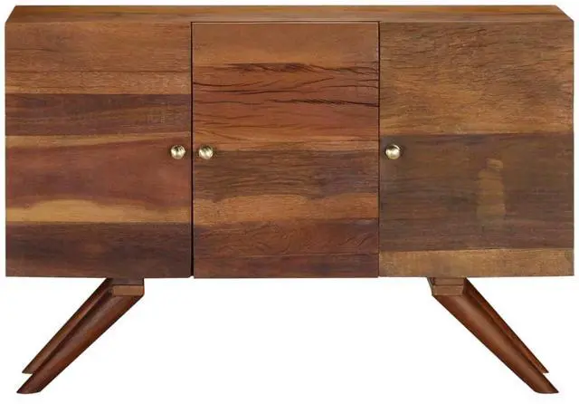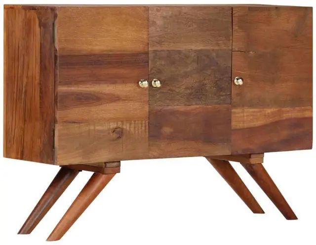 This solid wooden sideboard will make a decorative as well as practical addition to your decor. The cabinet is made of solid reclaimed wood that has been sourced from joists, floors and support beams from old buildings being demolished, and can consist of different types of wood like pine, teak, beech, oak, cedar, mango wood, acacia, etc. This means the reclaimed wood retains the characteristics of these different types of wood. Reclaimed wood is already aged, weathered and dried, so it doesn't shrink or bend.