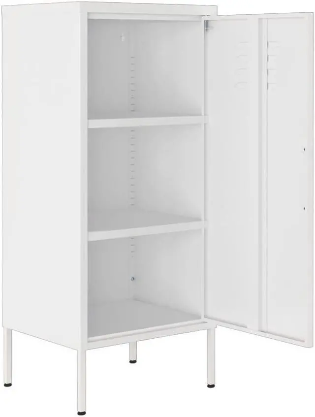 This steel cabinet will keep your house clean and well-organized! This storage cabinet is made of steel, making it sturdy and stable. The storage box has 2 adjustable shelves and levelers on the bottom. The shelves provide ample storage space to keep your DVDs, multimedia appliances, books and small essential items organized and within reach. It is also easy to clean with a damp cloth.