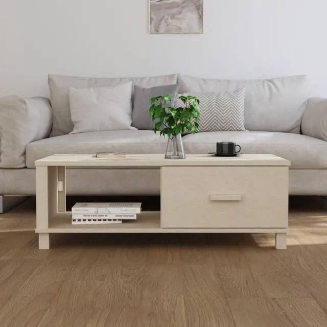 This wooden coffee table makes a decorative and practical addition to your decor. This center table is made of solid pinewood, making it stable and sturdy. The tabletop is ideal for placing food and drinks, decorative items, etc. Additionally, the side table features a drawer and a compartment, providing ample storage space for magazines, books and other essentials you'd like to keep within reach.