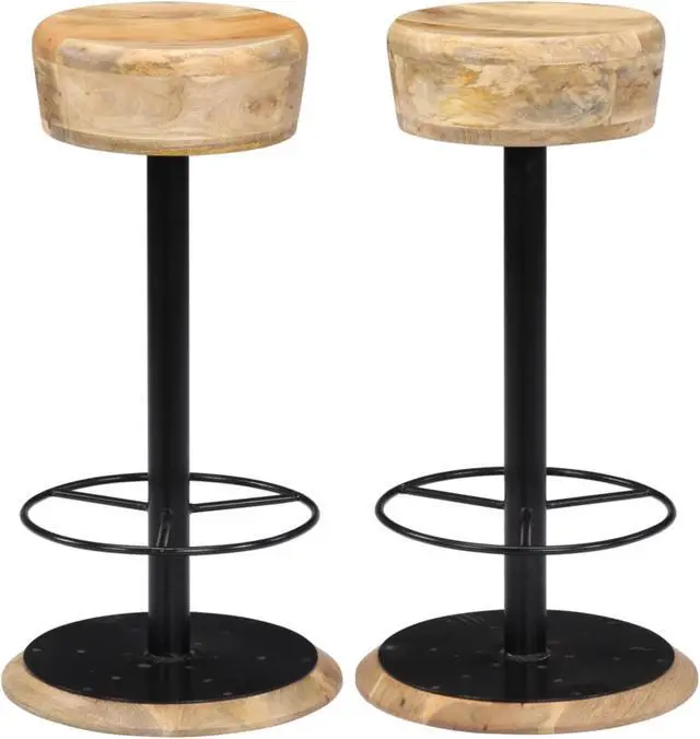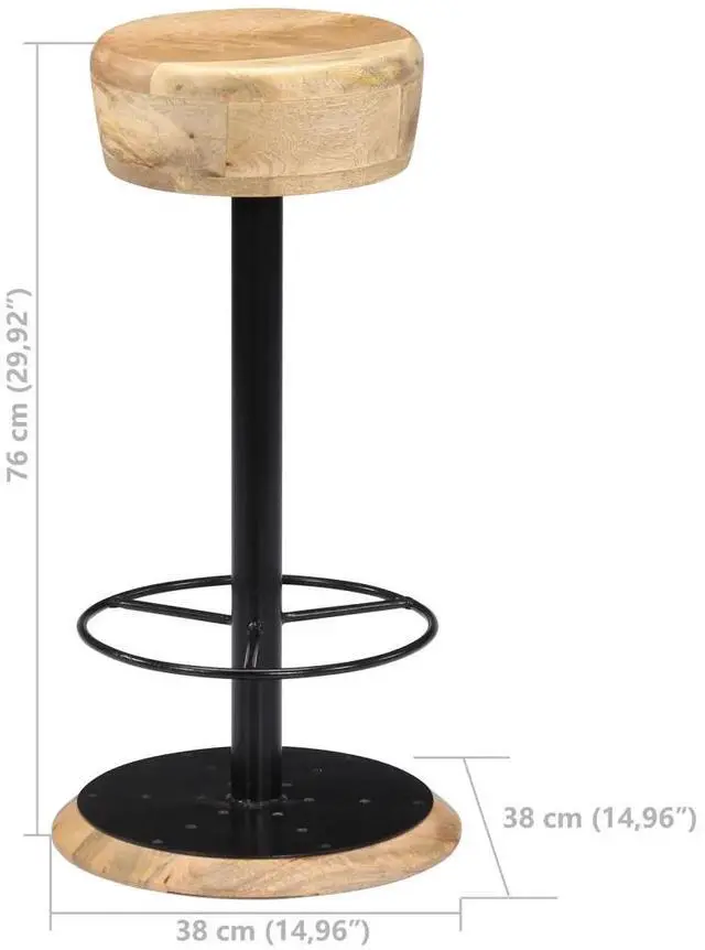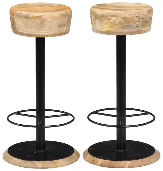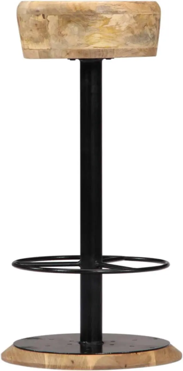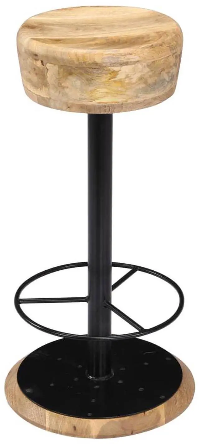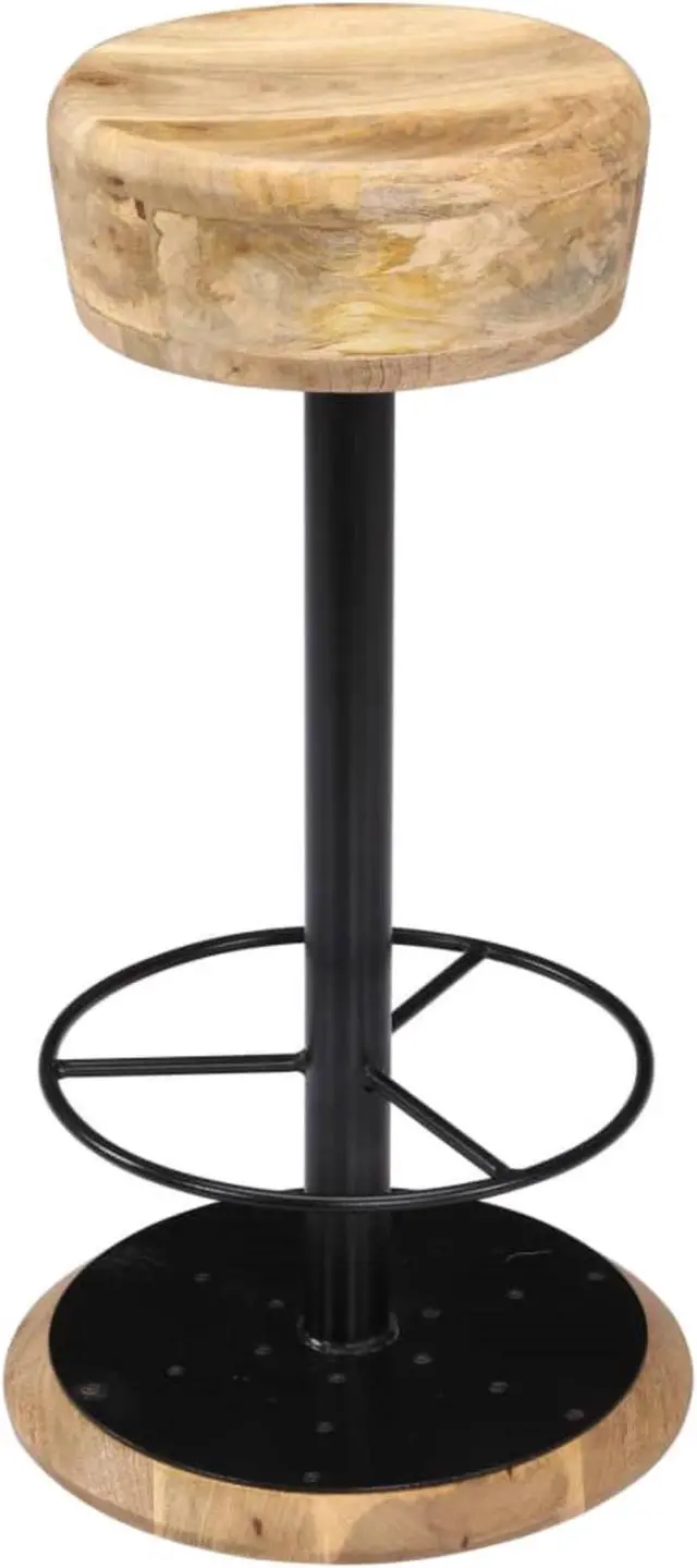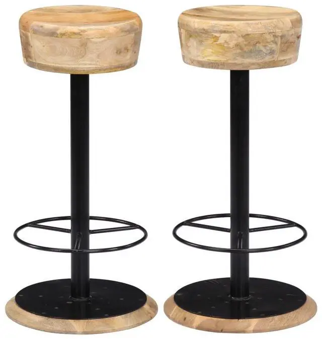 The bar stool is fully handmade and the refined wood grains make every piece of furniture distinctive and slightly different from each other. The powder-coated iron adds to the pub chair's sturdiness. Delivery includes 2 bar chairs.