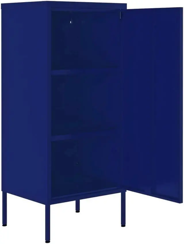 This storage cabinet is made of steel, making it sturdy and stable. The storage box has 2 adjustable shelves and levelers on the bottom.