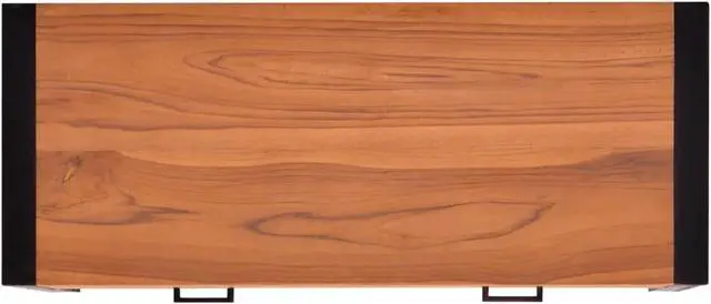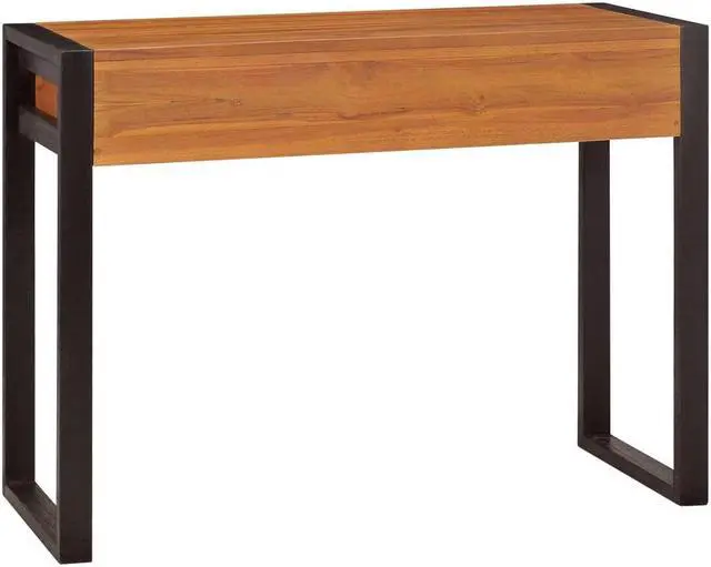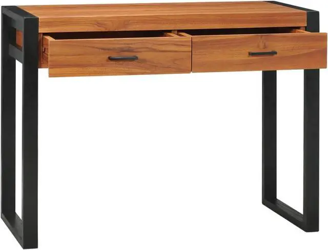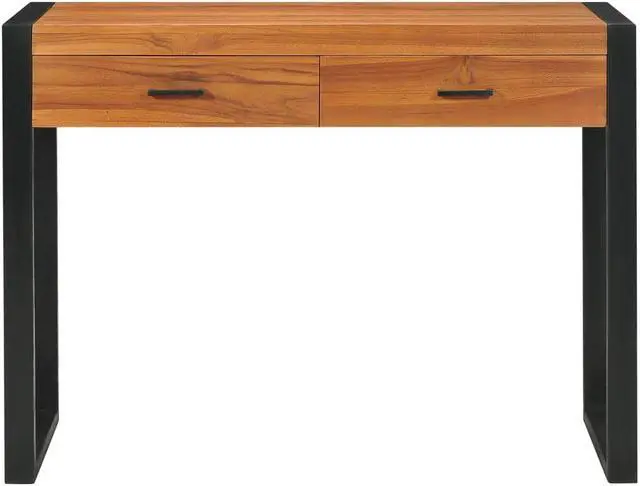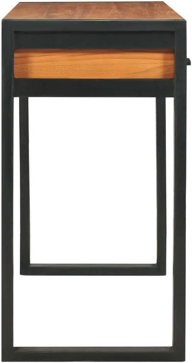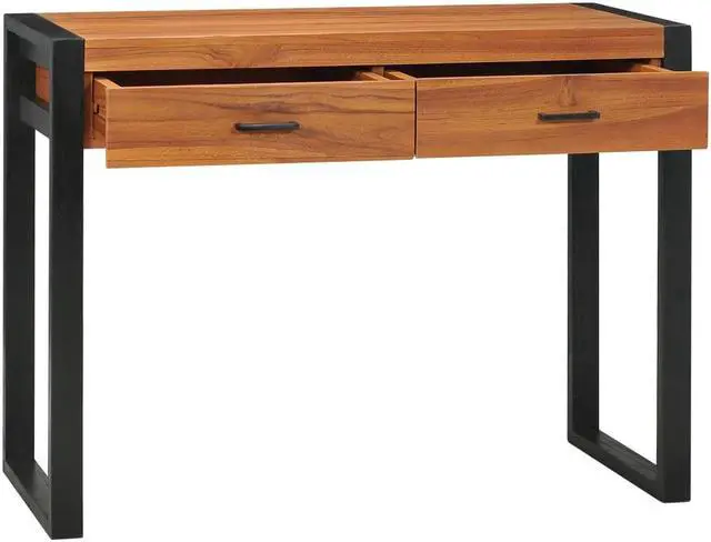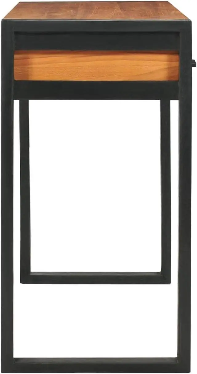 This wooden desk exudes a rustic charm, making it a distinctive addition to your home or office. It can also be used as a console table or computer table. The desk is made of solid teak wood. Every step of the process is carried out with the greatest care, be it polishing, painting, or lacquering. The craftsmanship and the beautiful wood grain make every piece of furniture unique and slightly different from the next. The desk is stable, durable, but also has an aesthetic appeal. The wooden frame offers extra stability for the desk.