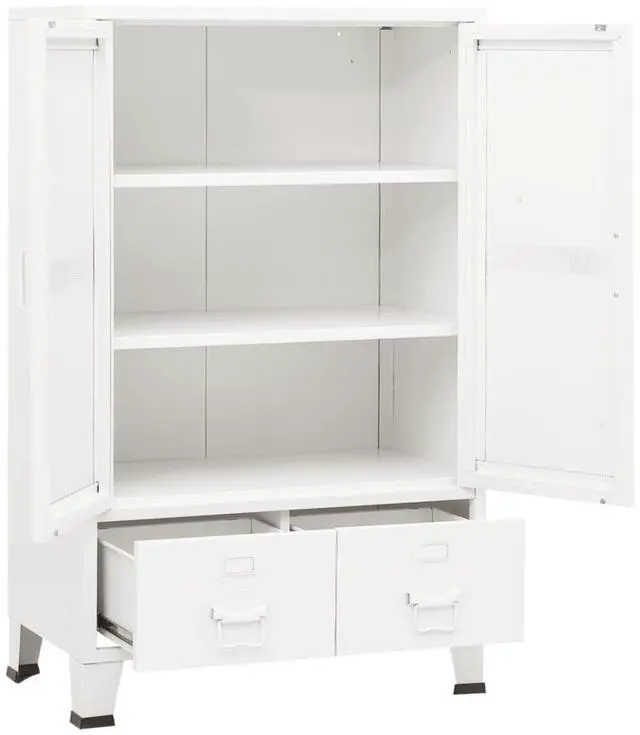 This Industrial White Metal Storage Chest is a stylish yet practical addition to your space, perfectly balancing style and storage. Its solid design reflects industrial chic, making it versatile for everything from organizing multimedia to storing other essentials in both living rooms and offices.