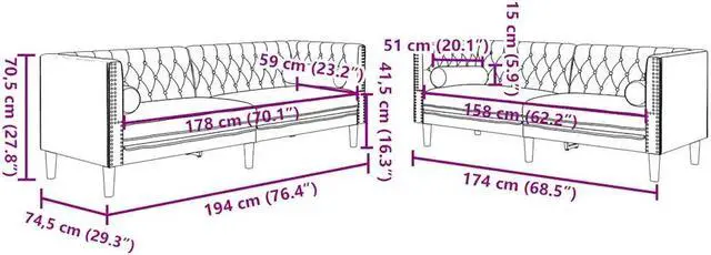 Chesterfield style: With the classic button-tufted backrest and armrests, and a uniform back and arm height, the sofa will elevate any room, providing both style and comfort.
