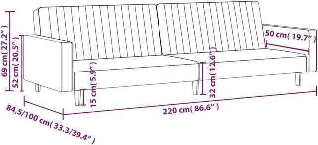 Overall dimensions: 86.6" x 39.4" x 20.5" (L x W x H)