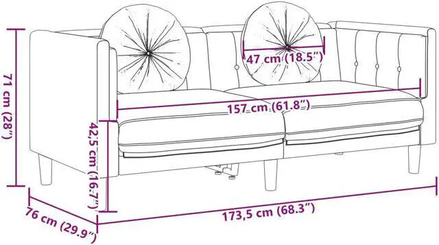 Overall dimensions: 68.3" x 30.3" x 27.6" (W x D x H)
