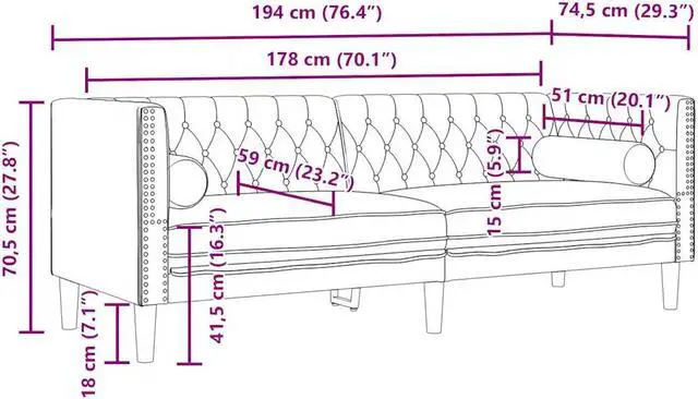Chesterfield style: With the classic button-tufted backrest and armrests, and a uniform back and arm height, the sofa will elevate any room, providing both style and comfort.