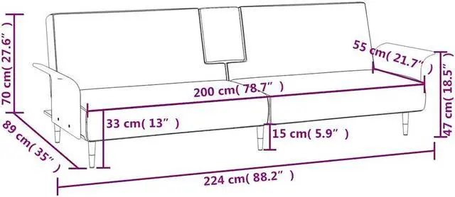 Overall dimensions: 88.2" x 35" x 27.6" (W x D x H)