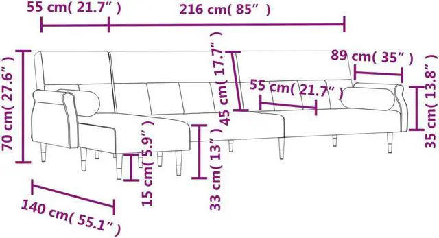 Overall dimensions (when fully extended): 85" x 39.4" x 18.9" (W x D x H)