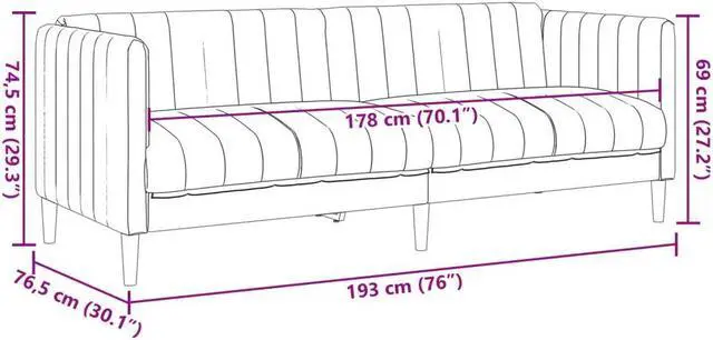 Overall dimensions: 76" x 30.1" x 29.3" (W x D x H)