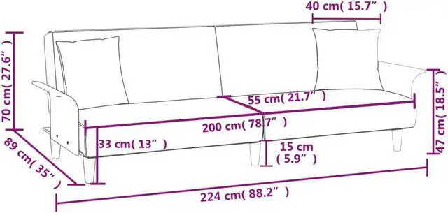 Overall dimensions (when not extended): 88.2" x 35" x 27.6" (W x D x H)