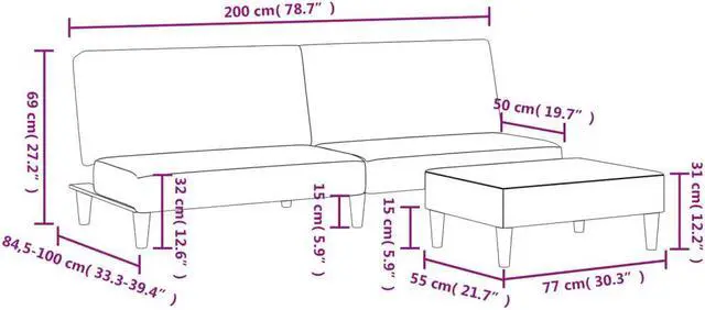 Overall dimensions: 78.7" x 33.3" x 27.2" (L x W x H)
