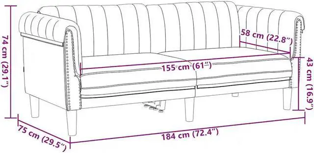 Overall dimensions: 79.9" x 30.3" x 29.1" (W x D x H)