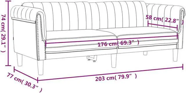 Overall dimensions: 79.9" x 30.3" x 29.1" (W x D x H)