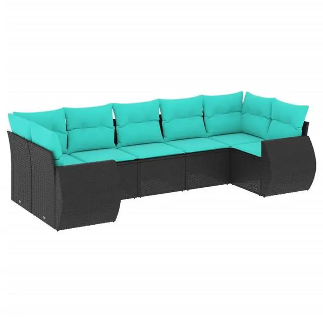 This modular sectional patio sofa set mixes style and functionality, perfect for relaxing or socializing outdoors. With its modern look and a vibrant black and blue scheme, it brightens up any balcony or garden, making it a great spot for chilling or having friends over.