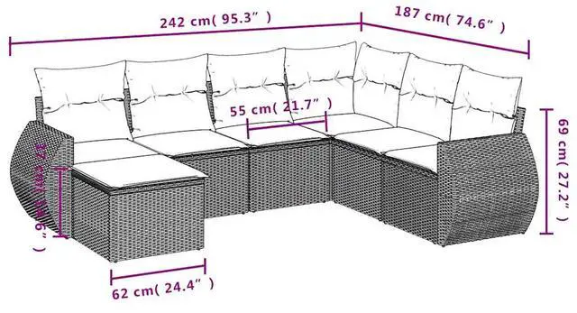 This 7-Piece Modular Outdoor Sofa Set exudes modern charm and functional flexibility, perfect for your garden, patio, or balcony. Made from tough poly rattan with a sturdy powder-coated steel frame, this set blends style with practicality, giving you a lovely spot for gatherings, relaxation, or just enjoying the great outdoors.