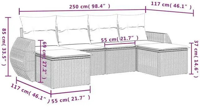 Durable Construction: Made from top-notch UV-resistant synthetic rattan and powder-coated steel, this sofa set is built to handle the outdoors, keeping its charm and function for years, even under the sun.