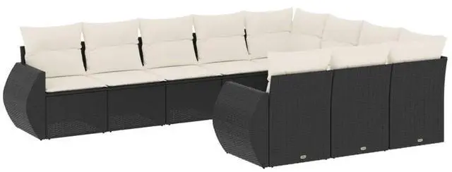 This outdoor sectional sofa set blends modern chic with comfort, creating a perfect chill spot outside. With its smooth feel and the mix of black poly rattan with cream cushions, this set turns any terrace, balcony, or backyard into a stylish haven, ideal for welcoming friends or unwinding with family.