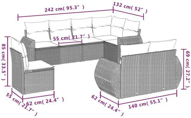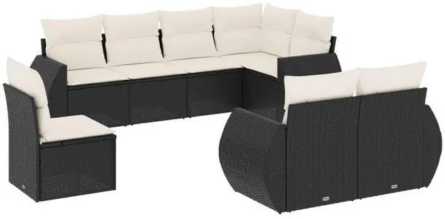 This 8-piece modular garden sofa set is made for enjoying the outdoors, giving you a stylish seating option that's just right for patios or balconies. Its modern design, with the sleek black poly rattan and cream cushions, fits right in with contemporary outdoor spaces and is comfy for get-togethers.