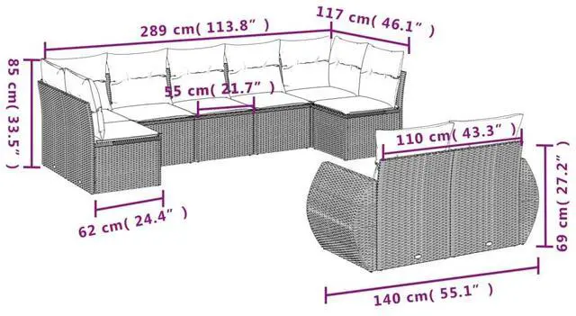 This 9-Piece Modular Outdoor Sofa Set is made for outside use, giving both style and usefulness for your terrace, patio, or garden. With a sleek modern design featuring clean lines and smooth surfaces, this sofa set not only gives plenty of room for gatherings but also turns any outdoor area into a cozy lounge, perfect for small or big occasions.