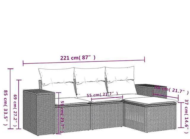 Delivery Contains: 1 x Centre seat, 2 x Arm sofas, 1 x Footstool, 3 x Back cushions, 4 x Seat cushions with removable and washable covers
