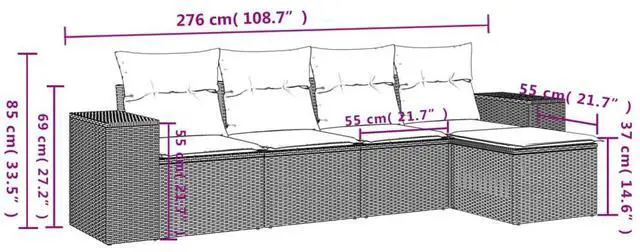 This 5 Piece Garden Sofa Set is a fab outdoor seating solution that brings style and comfort together. It's perfect for relaxing or hanging out with friends. The modern look, with its smooth weave of poly rattan and comfy cushions, invites you to chill in the sun or enjoy a cozy evening gathering with friends and family in your garden or patio.