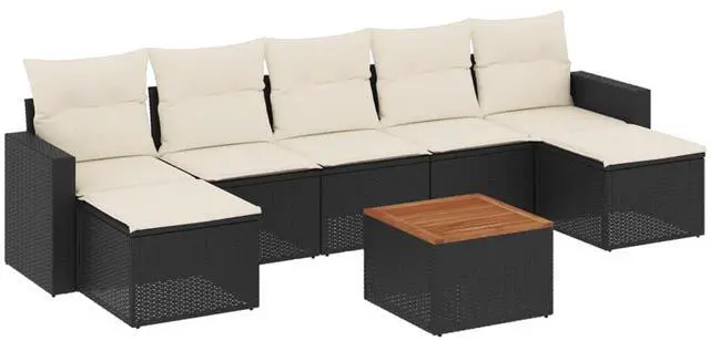This 8-piece garden sofa set is a stylish choice for outdoor chilling and socializing. It's built tough with poly rattan material that looks great and stands up to the sun's rays. The powder-coated steel frame means it can weather any storm, and it's comfy too. Each piece can be moved around to fit your space, whether you've got a tiny balcony or a huge terrace. Perfect for everyone, it's ideal for relaxed afternoons or lively evenings with friends. When you're done, just throw on a cover to keep it in top shape season after season.