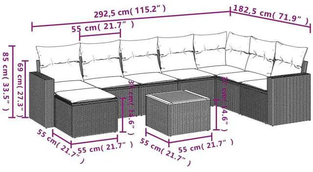 This 9 Piece Modular Garden Sofa Set is a gorgeous addition to any outdoor area, carefully designed to enhance the comfort and style of your balcony, patio, or garden. Its modern design shows off a stylish S-configuration that invites relaxation and socializing with friends and family, making it a must-have for those who value both style and practicality in their leisure spaces.