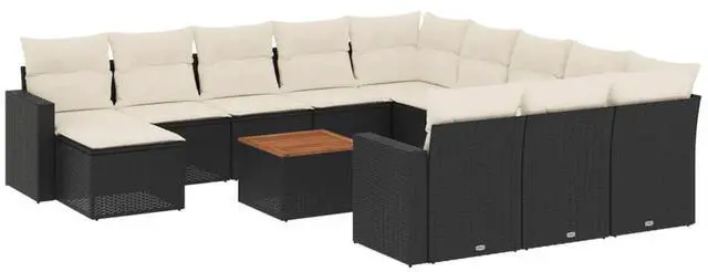 This 13-piece Modular Garden Sofa Set is posh and flexible, perfect for transforming your balcony or patio into a chic hangout zone. Made from high-quality poly rattan and solid acacia wood, this outdoor set boasts a sleek look with smooth textures, ideal for get-togethers or cozy nights in with friends and family.