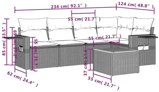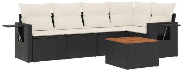 This 6 Piece Modular Garden Sofa Set combines elegance with practicality, catering to all your outdoor lounging needs. Designed for gatherings, this stylish sofa set features a modern aesthetic, where the rich black poly rattan harmoniously pairs with cream cushions, creating a sophisticated vibe perfect for patios, gardens, or rooftop terraces.