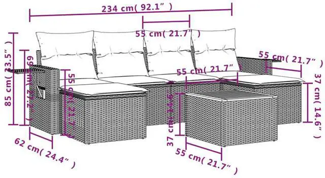 Spacious Design: This outdoor sofa set accommodates up to six people, making it perfect for relaxing moments with friends and family. The cushions add comfort while the structured design ensures enough space to unwind.