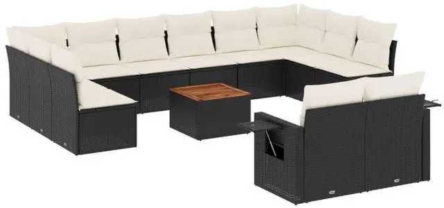 This vidaXL outdoor sectional sofa set mixes style and comfort, making it the perfect spot for relaxation and socializing. Made with sturdy poly rattan and solid acacia wood, this classy set fits right in any garden, patio, or balcony. The stylish black and cream color scheme adds a chic touch to your outdoor décor.