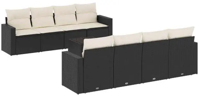 Stylish Aesthetics: The black poly rattan and tempered glass tabletop create a modern vibe that spruces up any outdoor area. With the soft cream cushions, it adds a touch of luxury to your garden parties.