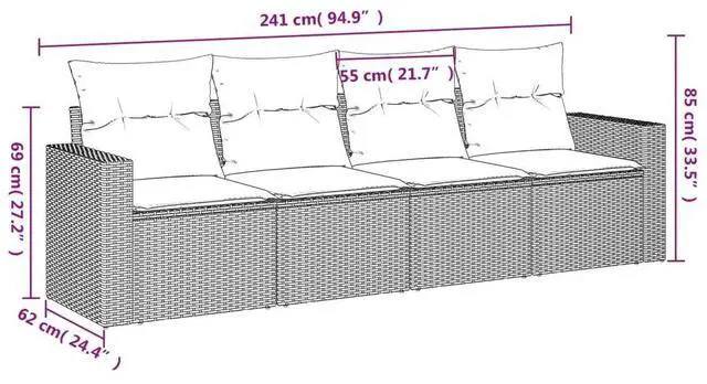 Dimensions: 94.9 x 24.4 x 27.2 in (W x D x H)