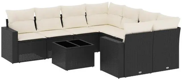 This 9-piece modular garden sofa set mixes function with style, perfect for lounging either indoors or outdoors. The sleek black poly rattan with cream cushions gives a modern flair that brings any patio, balcony, or living room to life.