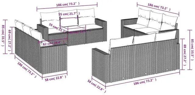 Spacious Comfort: With room for up to 12 people, this set is perfect for entertaining big groups. The generous seating depth of 21.7 in. and thick cushions give you a comfy lounging experience.