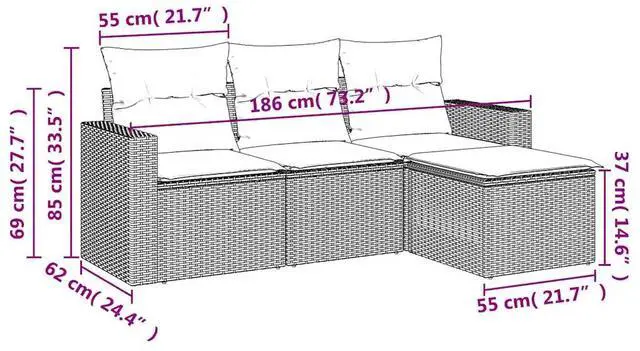 Dimensions: 73.2 x 24.4 x 27.2 in (W x D x H)